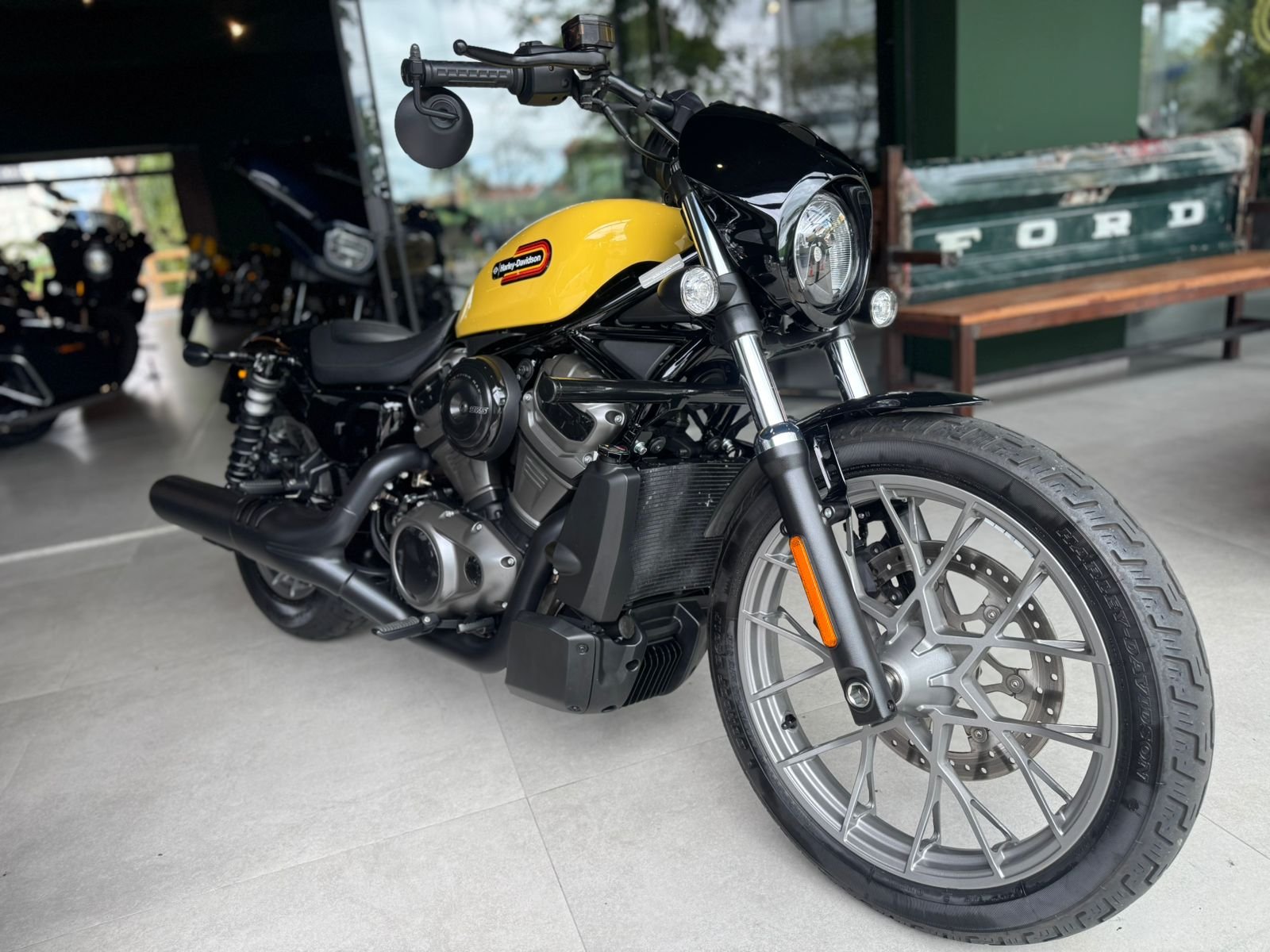 Painel TFT com velocímetro, indicador de marchas, odômetro, nível de combustível, relógio, odômetro parcial, temperatura ambiente, alerta de baixa temperatura, alerta de cavalete lateral abaixado, alerta de tombamento, velocidade de cruzeiro, autonomia e indicação do tacômetro, emparelhamento de celular compatível com Bluetooth para acesso a chamadas telefônicas, música e navegação (SOMENTE com o aplicativo H-D)